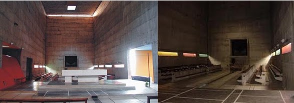 Se adivina una cierta influencia de la iglesia de la Tourette de Le Corbusier, en su forma, sus luces derramadas…, incluso también en las actuales ventanas de los pasillos laterales que sustituyeron a las originales realizadas en mosaicos de pavés.